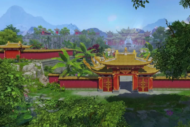 枫叶环绕层峦起伏天龙八部整个场景极富有少林禅意