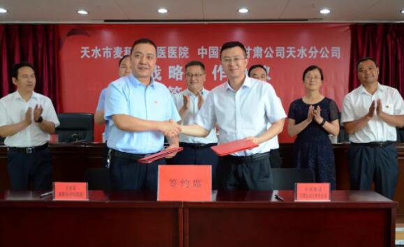 水市麥積區中醫醫院與中國移動通訊集團甘肅有限公司天水分公司(以下簡稱「天水移動」)戰略協作簽約典禮在天水移動公司隆重舉行。天水市中西醫結合醫院黨委委員、副院長、天水市麥積區中醫醫院院長閆振錄與天水移動分公司黨委委員、副總經理、紀委書記、工會主席高保平出席簽約典禮並先後致辭。天水市第二人民醫院第23黨支部書記、天水市麥積區中醫醫院副院長王惠明與天水移動分公司黨委委員、總經理助理張銳代表兩邊簽定戰略協作協議。